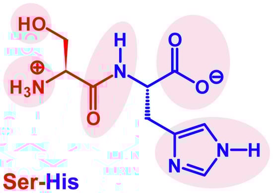 Since we previously focused our attention on the role of peptides in these prebiotic scenarios [18,19,20], here we aim to discuss the literature regarding the discovery that a simple dipeptide, Ser-His (Figure 1), is capable of catalyzing the coupling reaction of amino acid derivatives or nucleotide derivatives. We will then present a general view on what could have been the roles of short and random peptides in the origins of life. In doing this, we will cite selected papers of the origins of life literature. It should be clear that this review is not intended to be comprehensive with respect to the large amount of work done on this subject. Some references will be just briefly commented on, whereas only the most relevant for our discussion will be presented in detail. In addition to Ser-His-related findings, screening of peptide libraries, organocatalysis mechanisms, molecular recognition and interaction with primitive membranes are possible fields of inquiry for further development in this research.