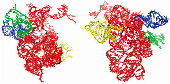 - Petrov, A.S.; Bernier, C.R.; Hsiao, C.; Norris, A.M.; Kovacs, N.A.; Waterbury, C.C.; Stepanov, V.G.; Harvey, S.C.; Fox, G.E.; Wartell, R.M.; et al. Evolution of the ribosome at atomic resolution. Proc. Natl. Acad. Sci. USA 2014, 111, 10251–10256. [Google Scholar] [CrossRef] [PubMed]