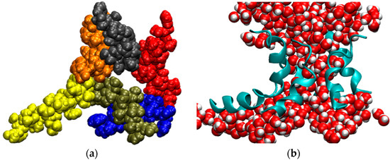 - MacKerell, A.D.; Bashford, D.; Bellott, M.; Dunbrack, R.L.; Evanseck, J.D.; Field, M.J.; Fischer, S.; Gao, J.; Guo, H.; Ha, S.; et al. All-atom empirical potential for molecular modeling and dynamics studies of proteins. J. Phys. Chem. B 1998, 102, 3586–3616. [Google Scholar] [CrossRef] [PubMed]