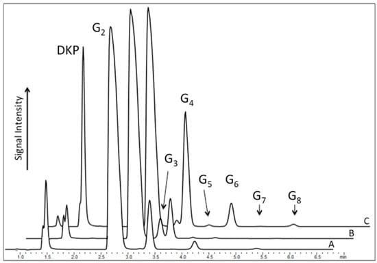 The concentration of oligomer products was determined by the integration of absorbance values (195 nm) and calibration with commercially available standards (r2 ≥ 0.999).