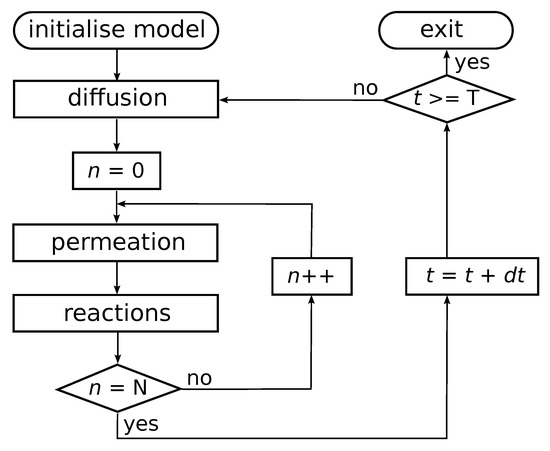 12]. The main focus in the current study has been on the population and spatial aspects. This could, for example, model chemistry in the porous structure of hydrothermal vents [