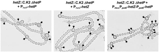 - Higa, K.C.; Callahan, S.M. Ectopic expression of hetP can partially bypass the need for hetR in heterocyst differentiation by Anabaena sp. strain PCC 7120. Mol. Microbiol. 2010, 77, 562–574. [Google Scholar] [CrossRef] [PubMed]