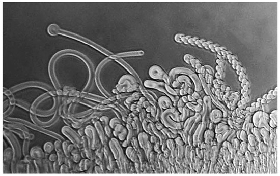 DD: The simplest way to answer your question is to refer to a brief history I wrote a few years back for the journal Astrobiology [4]. During the spring and summer of 1975, I was spending a sabbatical leave with Alec Bangham in his Babraham laboratory, just south of Cambridge, England, when an idea emerged that guided me into research on the origin of life. A few years earlier, Alec had discovered the self-assembly properties of phospholipid and showed that lecithin extracted from egg yolks produced microscopic vesicles when it interacted with water [5]. As the dried lipid absorbs water, it swells and produces wormlike structures called myelin figures (Figure 1). These are unstable, and, given time, ultimately form spherical structures now called liposomes.