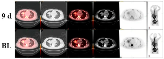 - Leimgruber, A.; Möller, A.; Everitt, S.J.; Chabrot, M.; Ball, D.L.; Solomon, B.; MacManus, M.; Hicks, R.J. Effect of Platinum-Based Chemoradiotherapy on Cellular Proliferation in Bone Marrow and Spleen, Estimated by (18)F-FLT PET/CT in Patients with Locally Advanced Non-Small Cell Lung Cancer. J. Nuclear Med. 2014, 55, 1075–1080. [Google Scholar] [CrossRef] [PubMed]