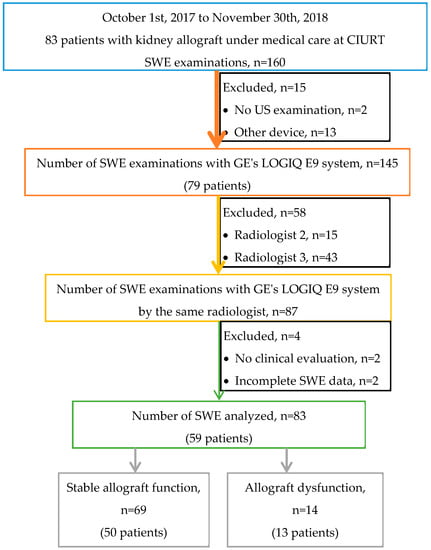 - Yang, J.; Wang, F.; Pan, W.; Ruan, L.; Ai, H. Correlation between ultrasound elastography parameters and renal function after kidney transplantation. Int. J. Clin. Exp. Med. 2017, 10, 3211–3217. [Google Scholar]