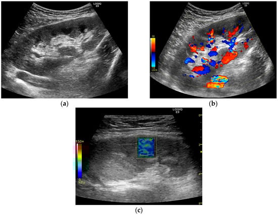 - Ghonge, N.P.; Mohan, M.; Kashyap, V.; Jasuja, S. Renal allograft dysfunction: Evaluation with shear-wave sonoelastography. Radiology 2018, 288, 146–152. [Google Scholar] [CrossRef]