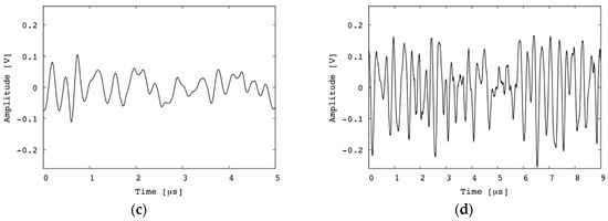 PA signals obtained from (a) copper wire and (b) hair using fabricated focused transducer, (c) copper wire and (d) hair using conventional OAT.