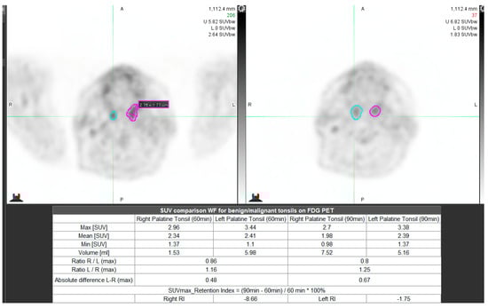 - Pietrzak, A.K.; Kazmierska, J.; Marszalek, A.; Cholewinski, W. Evaluation of physiologic and abnormal glucose uptake in palatine tonsils—Differential diagnostics with sequential dual-time-point 2-deoxy-2-[18 F]fluoro-D-glucose positron emission tomography/computed tomography examinations. Q. J. Nucl. Med. Mol. Imaging 2020, 64, 299–306. [Google Scholar] [CrossRef] [PubMed]
