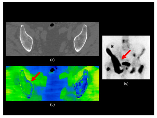 - Son, W.; Park, C.; Jeong, H.S.; Song, Y.S.; Lee, I.S. Bone marrow edema in non-traumatic hip: High accuracy of dual-energy CT with water-hydroxyapatite decomposition imaging. Eur. Radiol. 2019, 30, 2191–2198. [Google Scholar] [CrossRef]