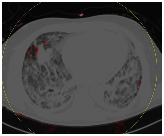 In December 2019, a novel coronavirus called severe acute respiratory syndrome coronavirus 2 (SARS-CoV-2) emerged in mainland China, leading to pneumonia of different severity [1,2]. This kind of pneumonia was later named “Coronavirus Disease 2019” (COVID-19) by the World Health Organization (WHO). Meanwhile, the outbreak of COVID-19 has developed into a pandemic, affecting almost every country worldwide and leading to millions of infections and hundreds of thousands of deaths. Therefore, in January 2020 the WHO declared a global health emergency [3]. To confine the further spread of this disease, an early diagnosis of COVID-19 is vital. One of the most common and useful diagnostic tools is reverse transcriptase polymerase chain reaction (RT-PCR) [4]. During the course of the pandemic, computed tomography (CT) imaging of the chest has gained increasing importance for diagnosis, the assessment of the extent of pulmonary involvement, the prediction and confirmation of possible complications, and for follow-up [5,6]. Typical CT imaging patterns have been described previously, mainly bilateral ground glass opacities (GGO), interlobular septal thickening, crazy paving, and consolidation [1,6,7,8,9,10,11,12,13,14,15].