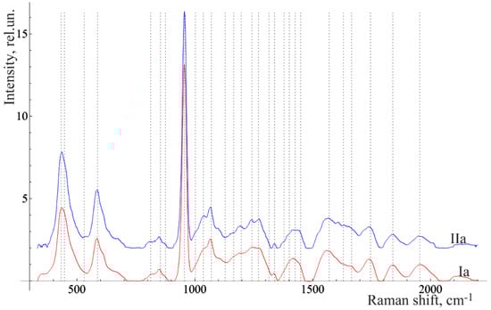 The average Raman spectra, normalized to the average intensity, of two in vivo studied groups of teeth of the volunteer: Ia—healthy enamel and IIa—enamel of the teeth with periodontitis.