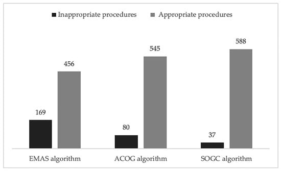 Comparison between different algorithms. The bar chart shows the different number of appropriate and inappropriate hysteroscopies according the three different algorithms considered.