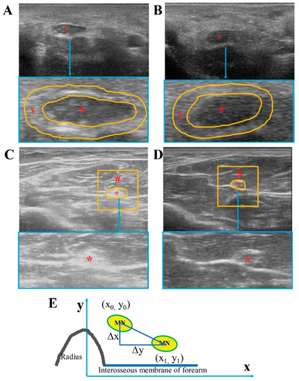 - Wang, Y.; Zhao, C.; Passe, S.M.; Filius, A.; Thoreson, A.R.; An, K.N.; Amadio, P.C. Transverse Ultrasound Assessment of Median Nerve Deformation and Displacement in the Human Carpal Tunnel during Wrist Movements. Ultrasound Med. Biol. 2014, 40, 53–61. [Google Scholar] [CrossRef]