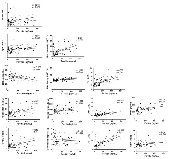 - Suárez-Ortegón, M.F.; Ensaldo-Carrasco, E.; Shi, T.; McLachlan, S.; Fernández-Real, J.M.; Wild, S.H. Ferritin, metabolic syndrome and its components: A systematic review and meta-analysis. Atherosclerosis 2018, 275, 97–106. [Google Scholar] [CrossRef]