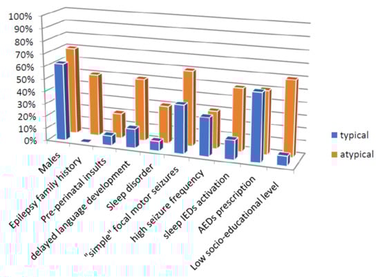 - Positive family history for epilepsy: 5 out of 10 patients in the “atypical” group versus 0 out of 13 patients in the “typical” group (p = 0.01769).