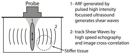 Elastography was performed in the exposed group using an ARFE-based commercial Supersonic Shear Imaging device (SSI) and a 7-MHz conventional endocavitary ultrasonic probe (SE 12-3, Supersonic Imagine, Aix-en-Provence, France). This technique [26,27] consists on generating shear waves inside the tissue by acoustic radiation force by a focussed ultrasound beam (Figure 1) [6].