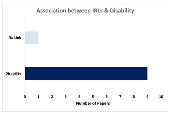 Illustrates the number of papers that found a link between IRLs presence and concurrent disability.