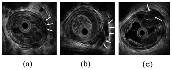 - Wallace, M.B.; Hoffman, B.J.; Sahai, A.S.; Inoue, H.; Van Velse, A.; Hawes, R.H. Imaging of esophageal tumors with a water-filled condom and a catheter US probe. Gastrointest. Endosc. 2000, 51, 597–600. [Google Scholar] [CrossRef]