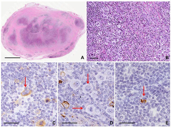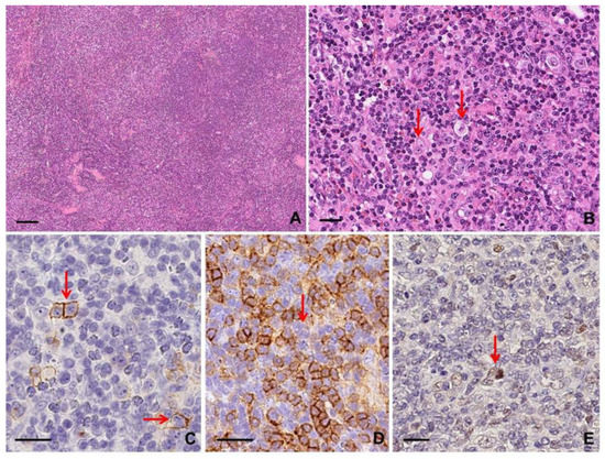 - Gomez-Gelvez, J.C.; Smith, L.B. Reed-Sternberg-Like Cells in Non-Hodgkin Lymphomas. Arch. Pathol. Lab. Med. 2015, 139, 1205–1210. [Google Scholar] [CrossRef]