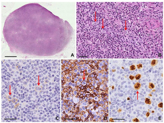 - Nicolae, A.; Pittaluga, S.; Venkataraman, G.; Vijnovich-Baron, A.; Xi, L.; Raffeld, M.; Jaffe, E.S. Peripheral T-cell lymphomas of follicular T-helper cell derivation with Hodgkin/Reed–Sternberg cells of B-cell lineage: Both EBV-positive and EBV-negative variants exist. Am. J.Surg. Pathol. 2013, 37, 816–826. [Google Scholar] [CrossRef]