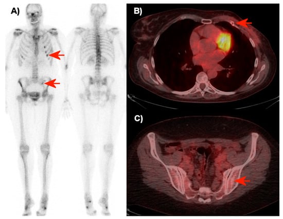 - Hildebrandt, M.G.; Gerke, O.; Baun, C.; Falch, K.; Hansen, J.A.; Farahani, Z.A.; Petersen, H.; Larsen, L.B.; Duvnjak, S.; Buskevica, I.; et al. [18F]Fluorodeoxyglucose (FDG)-Positron Emission Tomography (PET)/Computed Tomography (CT) in Suspected Recurrent Breast Cancer: A Prospective Comparative Study of Dual-Time-Point FDG-PET/CT, Contrast-Enhanced CT, and Bone Scintigraphy. J. Clin. Oncol. 2016, 34, 1889–1897. [Google Scholar] [CrossRef]