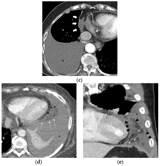 - Leung, A.N.; L. Muller, N.; R. Miller, R. CT in differential diagnpsis of diffuse pleural disease. AJR 1990, 154, 487–492. [Google Scholar] [CrossRef] [PubMed]