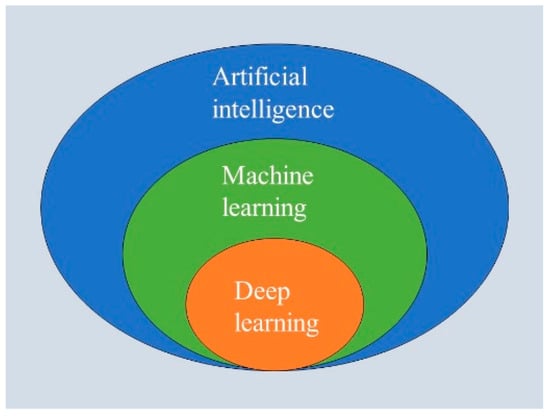 Schematic diagram of artificial intelligence, machine learning, and deep learning.