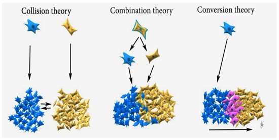 Collision theory: Carcinoma (blue cells) and sarcoma (brown cells) are two independent neoplasms, which later merge; Combination theory: both components are derived from a single stem cell that undergoes divergent differentiation early in the evolution of the tumour; Conversion theory: the sarcomatous element is derived from the carcinoma during tumour evolution (pink cells—epithelial–mesenchymal transition).