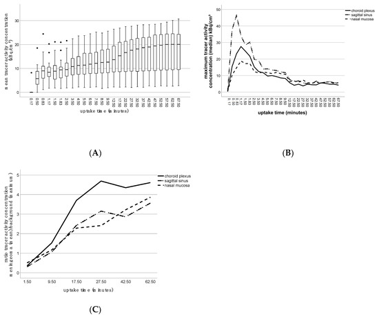 3.2. Tracer Activity Concentration Kinetics and Ratios