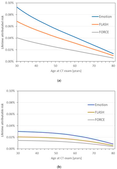 - Brix, G.; Berton, M.; Nekolla, E.; Lechel, U.; Schegerer, A.; Süselbeck, T.; Fink, C. Cumulative radiation exposure and cancer risk of patients with ischemic heart diseases from diagnostic and therapeutic imaging procedures. Eur. J. Radiol. 2013, 82, 1926–1932. [Google Scholar]