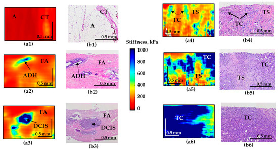 | Predominance of uniform distribution of high stiffness values (>500 kPa) | no | no | no | no | yes |