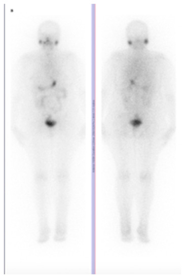 - Zhao, L.; Li, L. Rectus abdominis muscle metastasis from papillary thyroid cancer identified by I-131 SPECT/CT. Clin. Nucl. Med. 2010, 35, 360–361. [Google Scholar] [CrossRef]