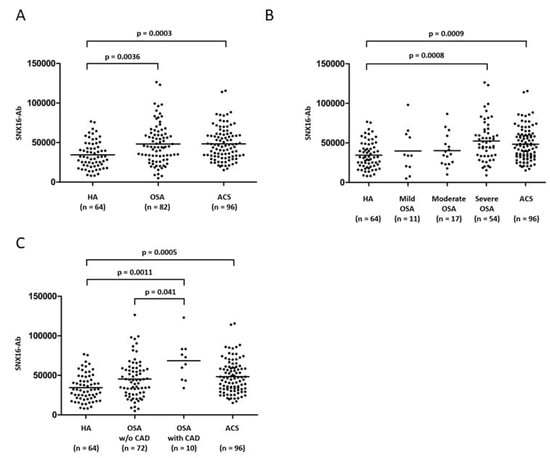 Katsumata, Y.; Terada, J.; Matsumura, T.; Koshikawa, K.; Sakao, S.; Tomiyoshi, G.; Shinmen, N.; Nakamura, R.; Kuroda, H.; Nagashima, K.; et al. Circulating Anti-Sorting Nexins 16 Antibodies as an Emerging Biomarker of Coronary Artery Disease in Patients with Obstructive Sleep Apnea. Diagnostics 2020, 10, 71. https://doi.org/10.3390/diagnostics10020071