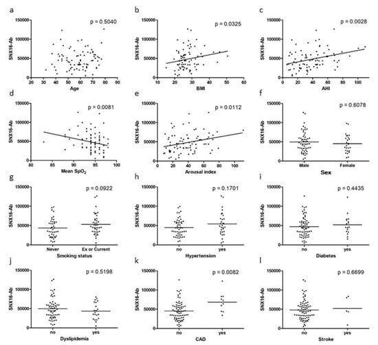 3.3. Correlation of SNX16-Ab Level and Clinical Data of OSA Group