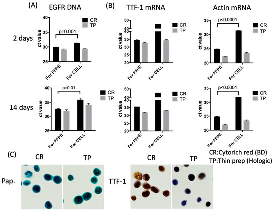 - Fujii, T.; Asano, A.; Shimada, K.; Tatsumi, Y.; Obayashi, C.; Konishi, N. Evaluation of RNA and DNA extraction from liquid-based cytology specimens. Diagn. Cytopathol. 2016, 44, 833–840. [Google Scholar] [CrossRef]