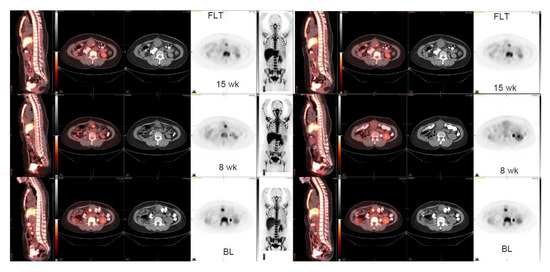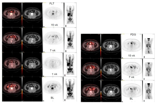 - Leyton, J. Early Detection of Tumor Response to Chemotherapy by 3′-Deoxy-3′-[18F]Fluorothymidine Positron Emission Tomography: The Effect of Cisplatin on a Fibrosarcoma Tumor Model In vivo. Cancer Res. 2005, 65, 4202–4210. [Google Scholar] [CrossRef] [PubMed][Green Version]