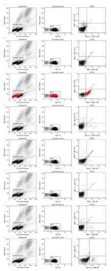 - IOTest® Beta Mark TCR Vß Repertoire Kit PN IM3497, Data Sheet, Beckman Coulter, Brea, California, USA. Available online: https://www.bc-cytometry.com/PDF/DataSheet/IM3497DS.pdf (accessed on 20 January 2020).