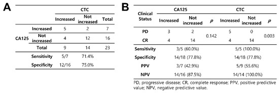 Chicago/Turabian StyleKim, Hyera, Minji Lim, Jin Young Kim, So-Jin Shin, Yoon-Kyoung Cho, and Chi Heum Cho. 2020. "Circulating Tumor Cells Enumerated by a Centrifugal Microfluidic Device as a Predictive Marker for Monitoring Ovarian Cancer Treatment: A Pilot Study" Diagnostics 10, no. 4: 249. https://doi.org/10.3390/diagnostics10040249