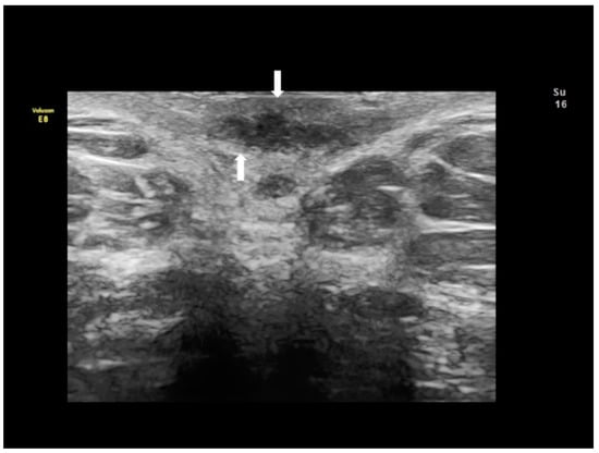 Endometriosis of the perineum and vulva is extremely rare, with the most common site being episiotomy scars. Color Doppler ultrasound revealed a subcutaneous nodule with an irregular outline and echo-complex density underlying the episiotomy scar []. Episiotomy scar endometriosis represents the less frequent type of scar endometriosis with a much lower prevalence compared to endometriosis in abdominal wall scars []. The typical ultrasonographic finding associated with perineal endometriosis is the presence of a solid lesion near to the episiotomy scar (Figure 11).