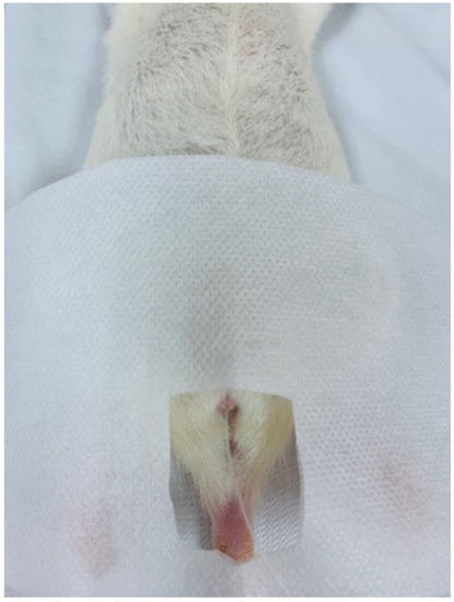 Thirty female virgin rats (Sprague Dawley; 225–250 g), aged 6–8 weeks, were randomized into five groups (n = 6/each group): group 1, saline-injected control; group 2, CYP plus intravesical instillation with normal saline; group 3, CYP plus intravesical instillation with hyaluronic acid (1 mg/mL); group 4, CYP plus intravesical instillation with PRP (0.3 mL); and group 5, CYP plus intravesical instillation with PRP plus hyaluronic acid. First, CYP-induced urothelial injury was provoked by a single intraperitoneal (i.p.) injection of CYP at a dose of 150 mg/kg dissolved in normal saline (5 mL/kg) [8,9,10]. Control rats received saline injections. Injections were done on day 0. Rats received intravesical instillation with hyaluronic acid, PRP, or normal saline on day 1. Experiments were conducted on day 4. The procedure followed urethane (1 g/kg, i.p.) anesthesia, in line with the methods as aforementioned. A sterile PE-10 catheter was inserted in the bladder through the urethra and an intravesical administration of saline (Figure 1) [26,27]. The sterile bladder catheter was linked to a syringe pump and a pressure transducer recorded pressure. Pressure and force transducer signals were examined and interpreted from data collection at 10 samples per second (PowerLabs, ADInstruments, Bella Vista, Australia). The rats were put supine, the pressure was at the level of zero, and bladders were filled with room temperature saline (20 μL/min) through the sterile bladder catheter at the same time. After a 30 min equilibration period, intravesical pressure was collected for 30 min [28].