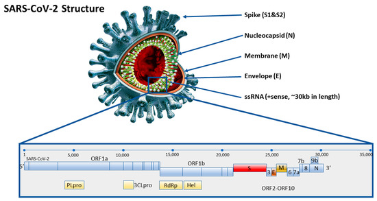 The relatively quick discovery of the composition of the full genome of SARS-CoV-2 early during the epidemics made it easier to develop specific starters and normalized laboratory protocols for COVID-19. The protocol of the first RT-qPCR test, focused on RNA-dependent RNA polymerase (RdRp), envelope (E) and nucleocapsid (N) of SARS-CoV-2 was published very early indeed, at the end of January 2020. Providing a brief description, the novel coronavirus SARS-CoV-2 is equipped with a receptor-binding domain (RBD), a structure similar to the ‘original’ SARS-CoV that emerged for the first time in 2002. Functionally important ORFs (1a and 1b) and other main structural proteins, including the spike (S), membrane (M), envelope (E), and nucleocapsid (N) proteins, are also well interrelated and clearly annotated. According to previous reports, the M and E proteins are essential for virus assembly, while the S protein is crucial for affinity and attachment to host cells, as the RBD of the S protein enables binding with angiotensin-converting enzyme 2 (ACE2). The S protein on the surface of the viral particles and has been reported to be highly immunogenic. The N protein, the main structural protein of SARS-CoV-2 is responsible for the transcription and replication of viral RNA, the packaging of the encapsulated genome into virions, and interactions with the cell cycle of host cells. In addition, coronaviruses contain the N protein, which has a substantial immunogenic ability and is abundantly expressed during viral infection (Figure 1). The S/N proteins are targeted as potential antigens for serodiagnosis of COVID-19, similarly to other diagnostic methods that were implemented for diagnosing SARS disease, based on S/N proteins [7].