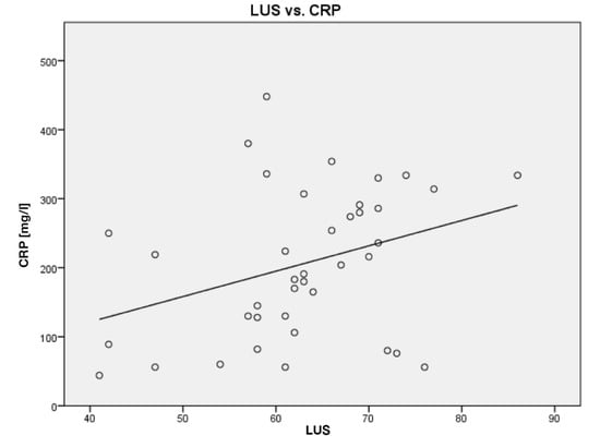 Data were initially analyzed with descriptive statistics. Associations between LUS score, CRP and compliance were tested with Pearson’s correlation. Significance level was set to 0.05, and statistical analyses were performed with IBM SPSS Statistics v.19 (SPSS Inc., Chicago, IL, USA).
