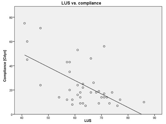 LUS score compared to compliance. Line of best fit is shown as a solid line.