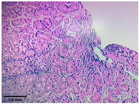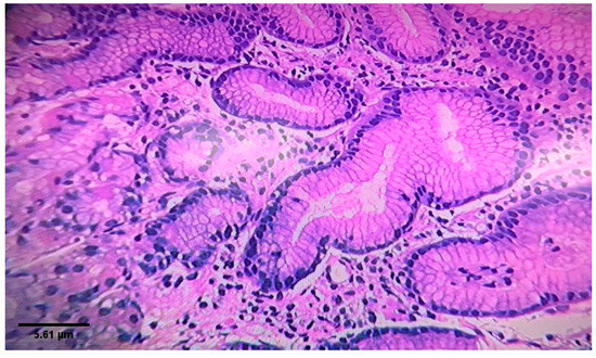 In the current study, the detection rate of H. pylori among the 30 patients in the diagnostic phase using endoscopy was 56.7%. This rate is in agreement with what was previously found in Jordanian adults, where the prevalence of infection with H. pylori was found to be between 56% and 82% among adults [27,28]. However, our 56.7% rate was much higher than that found in children aged 4–18 years in a study carried out by Altamimi et al., 2019 [29] using the 13C urea breath test. Differences in the study population, ages and other risk factors are expected to affect the rate between different studies. In addition, it can be concluded that infection with H. pylori can also be acquired beyond the childhood period, based on different prevalence found in these studies among children and adults.