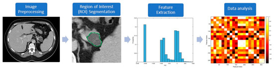 In the last decade, significant progress in diagnostic tools has been made towards preoperative differentiation of PCLs and identifying mucinous cysts with advanced neoplasia. New endoscopic-based technologies, such as contrast-enhanced harmonic EUS (CH-EUS), through-the-needle microforceps biopsy, needle-based confocal laser endomicroscopy (nCLE), and cyst fluid molecular biomarkers, have shown promising results but require future validation in large prospective multicenter studies [14,15,16,17,18,19,20]. The field of radiology has also transformed to minimize the issues inherent to qualitative imaging interpretation, including high intra- and inter-observer variability, and limited utilization of all the imaging data. Cross-sectional CT scans and MRIs are integral in the management of PCLs. Radiomics, which involves extraction of high-dimensional data from cross-sectional imaging studies, is an evolving field in radiology that could potentially improve differentiation and risk stratification of PCLs. This review aims to depict this novel technology and its application in the management of PCLs, including assessing the current limitations and discussing future directions.