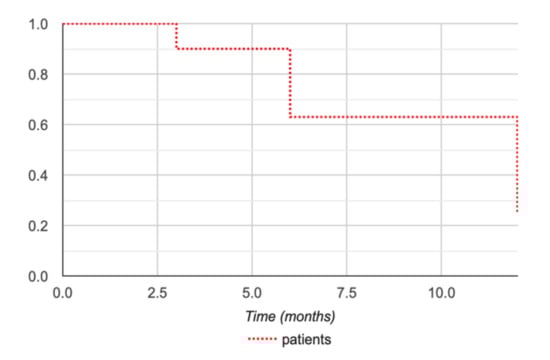DFS was 90% at 3 months and 62% at 6 and 12 months for all patients (Figure 3).