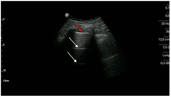 - Papa, G.F.S.; Mondoni, M.; Volpicelli, G.; Carlucci, P.; Marco, F.D.; Parazzini, E.M.; Reali, F.; Pellegrino, G.M.; Fracasso, P.; Papa, S.S.; et al. Point-of-Care Lung Sonography: An Audit of 1150 Examinations. J. Ultrasound Med. 2017, 36, 1687–1692. [Google Scholar] [CrossRef] [PubMed]
