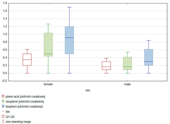 2.1.2. Comparative Analysis of Concentrations of Pterin Compounds in the Studied Groups