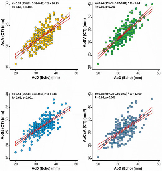 3.2. Correlations of Echocardiography-based Aortic Diameter with CT-based Measures
