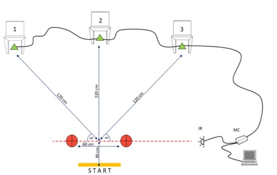 - Spasic, M.; Krolo, A.; Zenic, N.; Delextrat, A.; Sekulic, D. Reactive Agility Performance in Handball; Development and Evaluation of a Sport-Specific Measurement Protocol. J. Sports Sci. Med. 2015, 14, 501–506. [Google Scholar]
